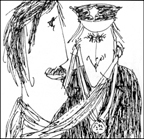 3e manche. Elle cherche un style qui exciterait tout autant l’œil que la main et qui illustrerait de façon simple et efficace une tranche de la vie d’un personnage de l’album. Un maximum d’informations en un minimum de lignes, une stylisation qui emprunte à la fois à la caricature et au dessin d’enfants. Certains éléments du dessin sont grossis exagérément, d’autres sont comprimés ou carrément escamotés. L’œil et la main prennent un tel plaisir à ce jeu qu’ils en oublient presque leurs vieilles querelles intestines.